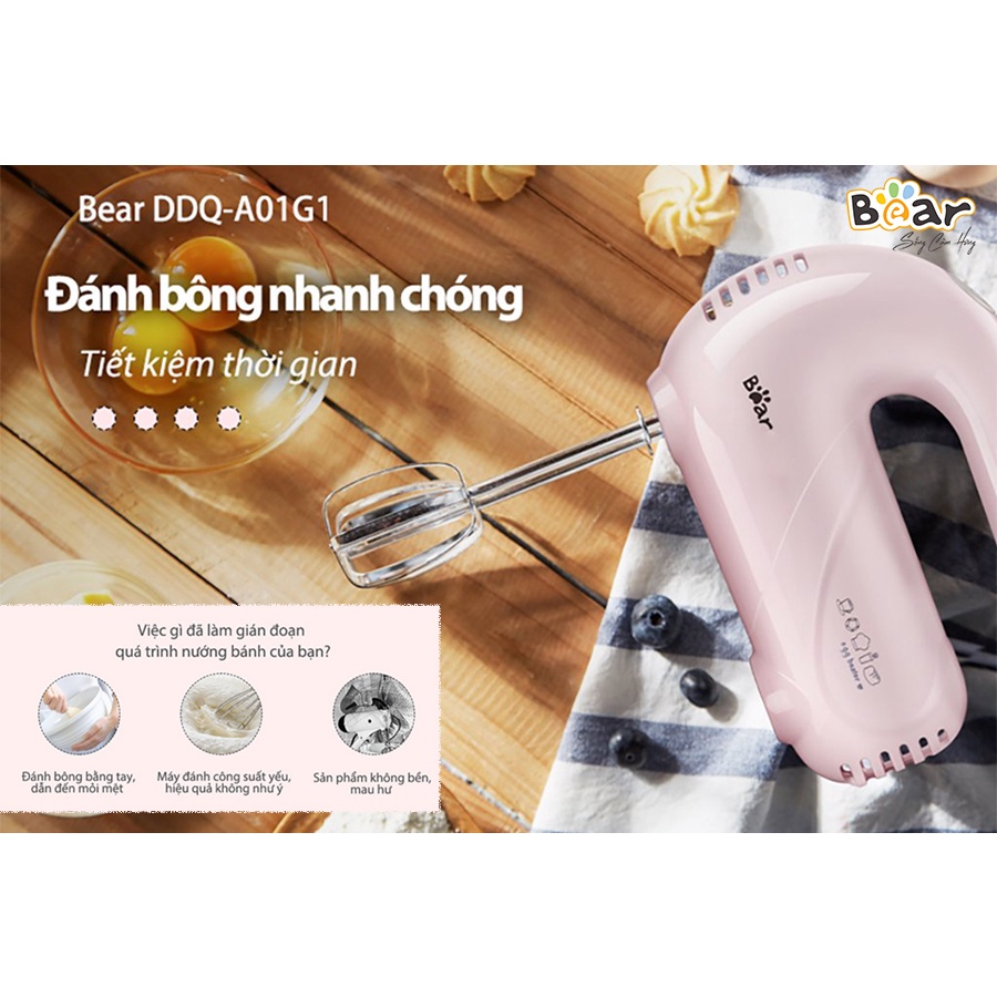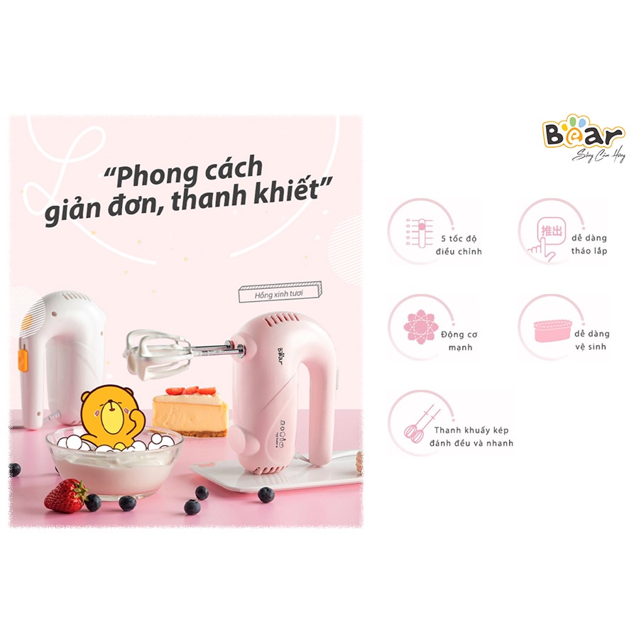 Máy đánh trứng mini cầm tay Bear DDQ-A01G1 động cơ 125W đánh bông nhanh chóng tích hợp 5 chế độ Gia dụng Bear Tuli Mart