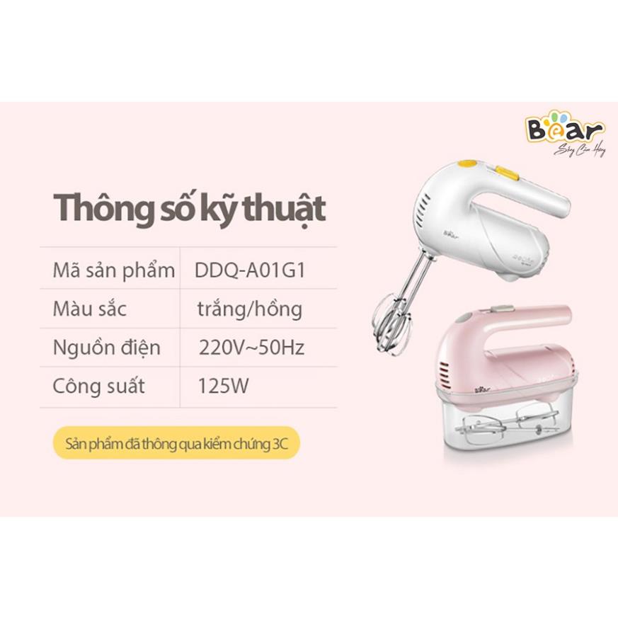 Máy đánh trứng mini cầm tay Bear DDQ-A01G1 động cơ 125W đánh bông nhanh chóng tích hợp 5 chế độ Đồ Gia Dụng Bear