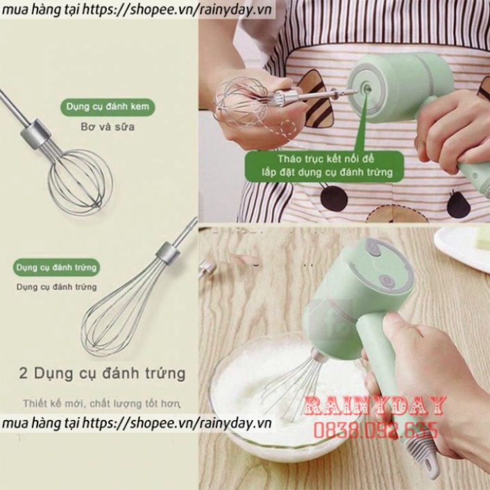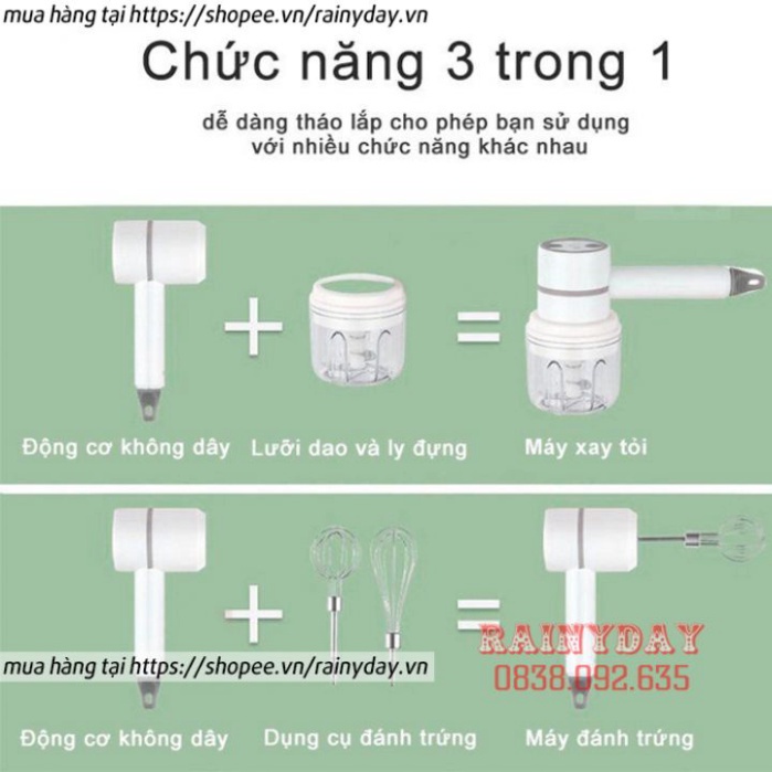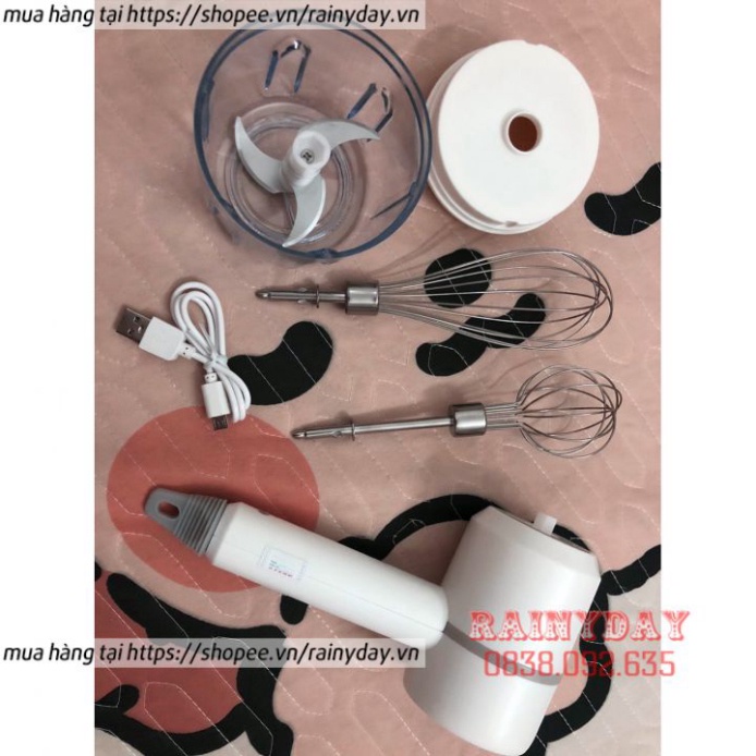 Máy đánh trứng cầm tay mini kiêm máy xay thịt đa năng sạc tích điện xay tỏi ớt, rau củ đa năng