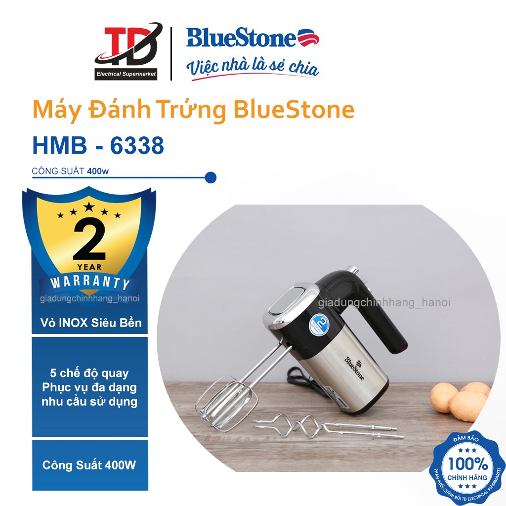 Giới thiệu [Mã ELHAMS5 giảm 6% đơn 300K] Máy đánh trứng Bluestone HMB-6338 , Công Suất 400W , Bảo hành chính hãng 2 năm