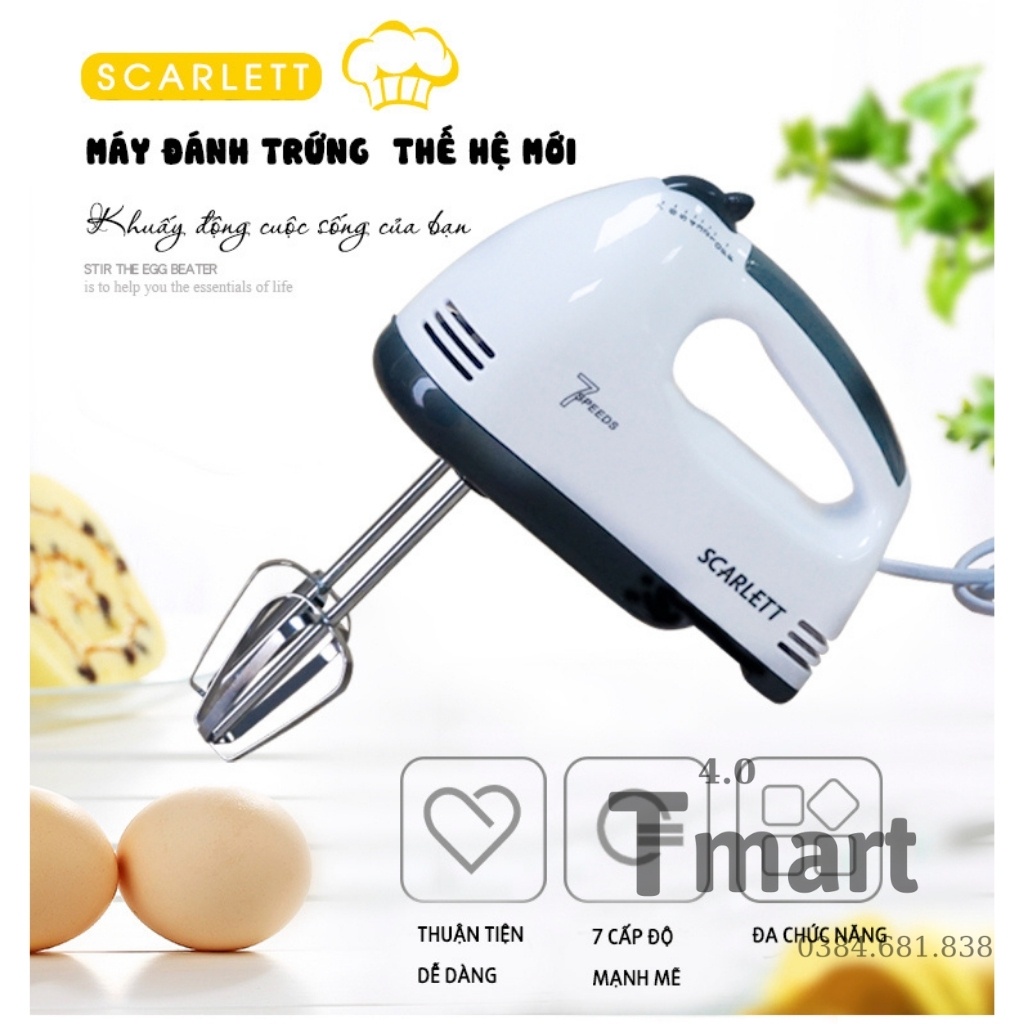 Giới thiệu Máy Đánh Trứng Cầm Tay Scarlett Mini 7 Tốc Độ Công Suất 180W - Bmart4.0