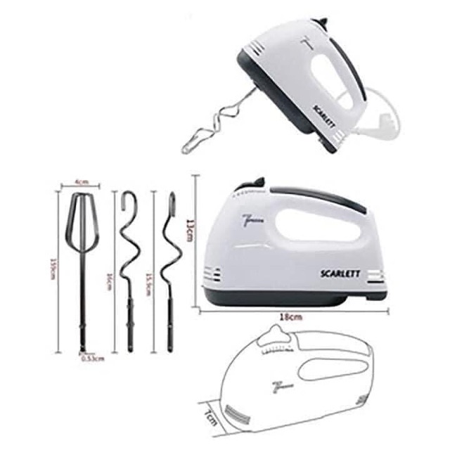 Máy đánh trứng Scalet💁♀️💁♀️Máy đánh trứng SCARLETT được sản xuất theo công nghệ của Anh có công suất 180w. Sản phẩm bao gồm: 2 que đánh trứng, 2 que quấy bột
