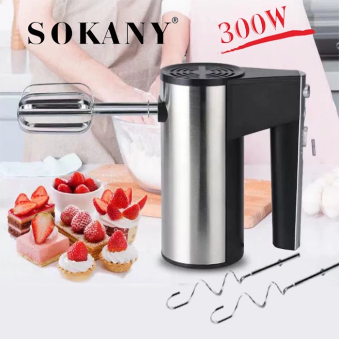 - Máy đánh trứng để bàn Sokany có 2 que đánh trứng, 2 thanh trộn ( đánh bông ) bằng Inox không gây rỉ sét, dùng để đánh kem, đánh trứng, nhào bột và các loại thực phẩm khác đảm bảo chất lượng, vệ sinh.