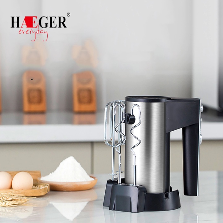 MÁY ĐÁNH TRỨNG LÀM KÈM HAEGER®️ TURBO 450W 220V- Máy đánh trứng, bột cầm tay HAEGER 450W với thiết kế thông minh giúp bạn đánh trứng, nhào bột, làm kem... nhanh chóng, giúp cho công việc nội trợ của bạn thêm phần nhẹ nhàng hơn.