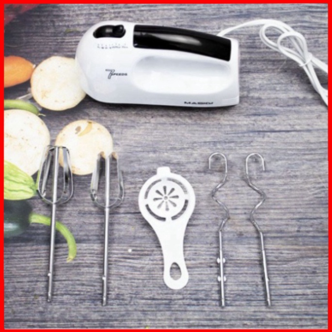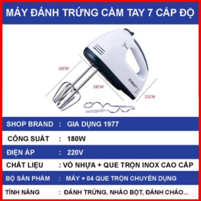 Thiết Bị Điện Gia Dụng > Đồ gia dụng nhà bếp > Máy trộn thực phẩm || Máy đánh trứng, đánh kem cầm tay cao cấp 7 cấp độ công suất 180Wkèm 04 que trộn tiện lợiCòn hàng