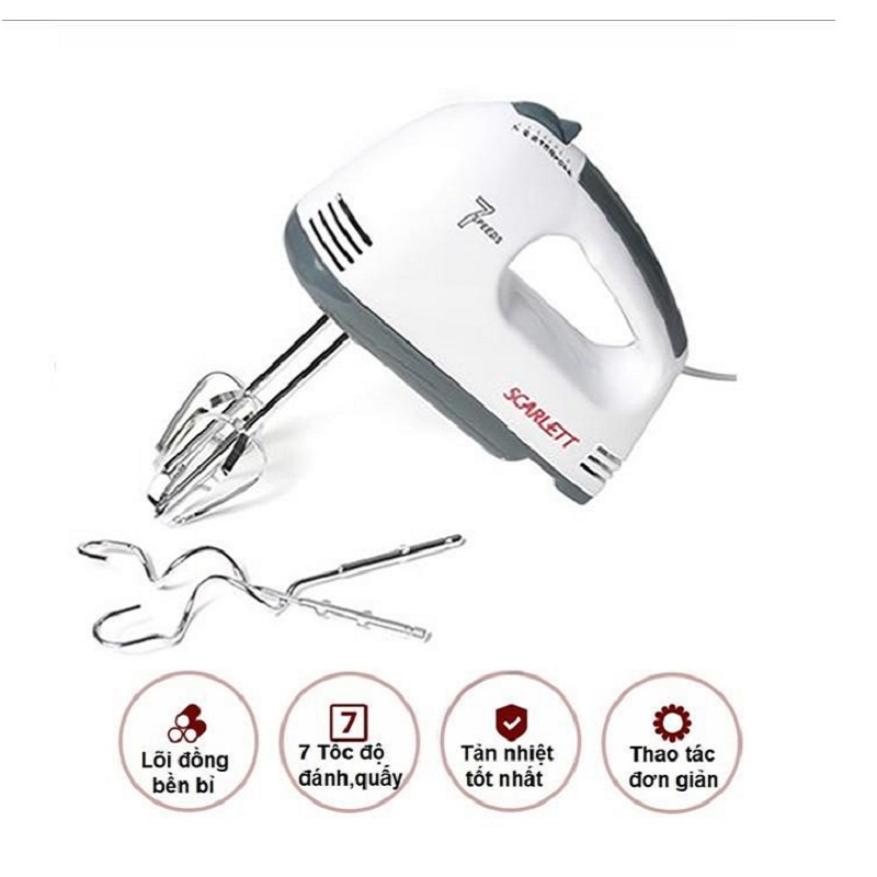 *** Máy Đánh Trứng, Đánh Kem Mini Cầm Tay Cao Cấp SCARLETT Với 7 Tốc Độ Cực Mạnh Và Hoạt Động Êm Ái=>=> Cuộc sống vốn bận rộn, dành thời gian bên gia đình với các món ăn khoái khẩu góp phần làm ấm thêm tình cảm mọi người thân. Đối với người Việt Nam chúng ta những món trứng chiên, bánh Plan, bánh kem hay món bánh truyền thông làm từ bột luôn có mặt trong các bữa ăn, buổi tiệc sinh nhật, tiệc họp mặt nên Máy Đánh Trứng 7 Tốc Độ, Thiết kế nhỏ gọn bạn không phải vất vả nhào bột, trộn trứng, rất tiết kiệm thời gian và điện năng.