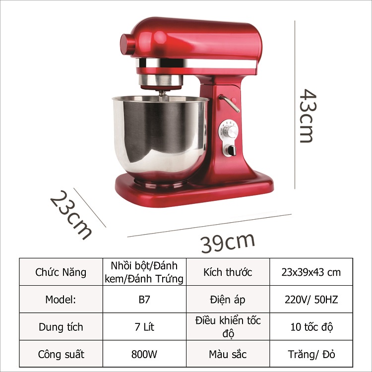 Giới thiệu Máy Đánh Trứng Đánh Kem Nhồi Bột 7 Lít Công Suất 800W B7 Siêu Bền Cho Tiệm Bánh Nhỏ Gia Đình - LKB7