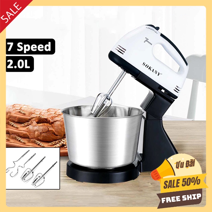 Máy đánh trứng, nhào bột để bàn Sokany 6620 công suất 250W chậu 2 lít hoạt động mạnh mẽ với 7 tốc độ cho khả năng thực hiện nhiều chức năng như nhào bột, đánh kem, đánh trứng và các loại thực phẩm khác. Nhờ đó, việc chế biến những chiếc bánh thơm ngon tại nhà sẽ trở nên đơn giản và tiện lợi hơn rất nhiều.