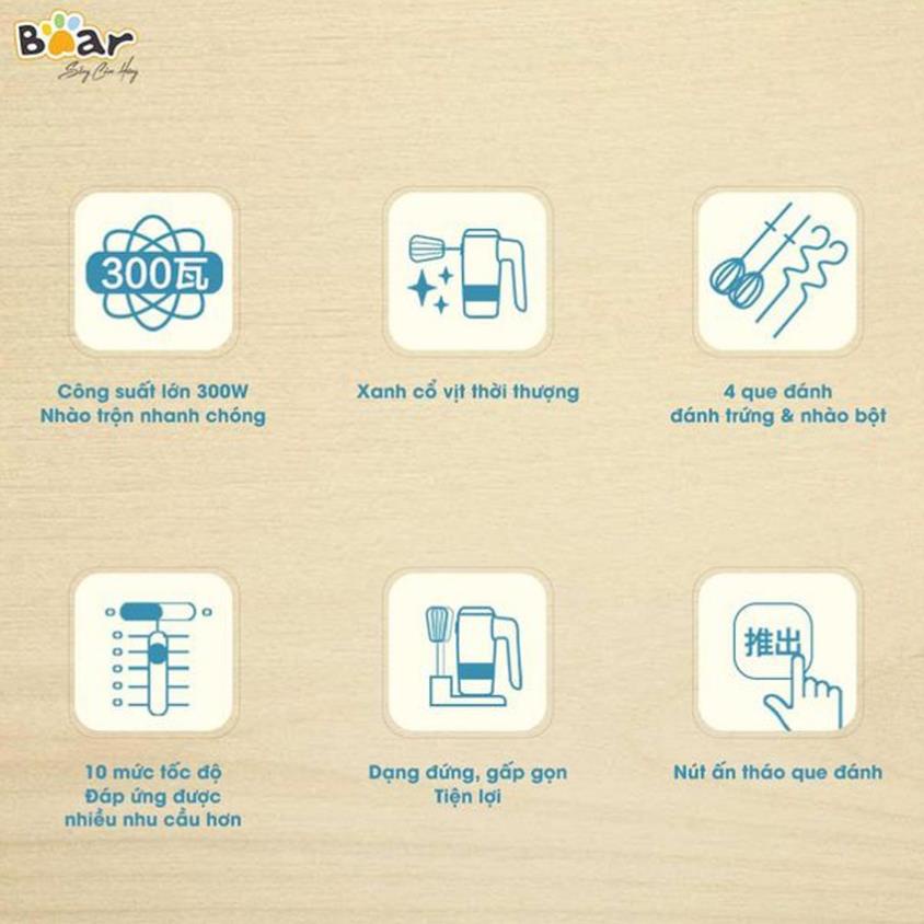 Máy Đánh Trứng Đánh Kem Trộn Bột Cầm Tay Bear, 10 tốc độ, CS 300W (Hàng chính hãng 1 đổi 1 trong 30 ngày, BH 18 tháng)
