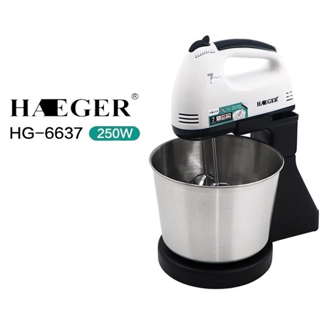 Thiết Bị Điện Gia Dụng > Đồ gia dụng nhà bếp > Máy trộn thực phẩm || Máy đánh trứng để bàn 7 tốc độ chính hãng HAEGER HG-6637Còn hàng
