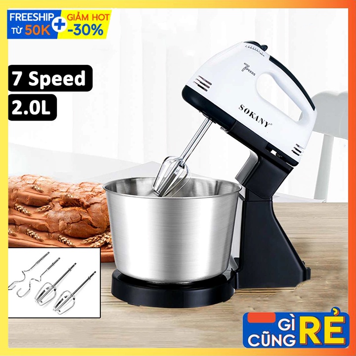 Thiết Bị Điện Gia Dụng > Đồ gia dụng nhà bếp > Máy chế biến thực phẩm & Xay thịt || Máy đánh trứng để bàn 7 tốc độ chính hãng SOKANY 6620Còn hàng
