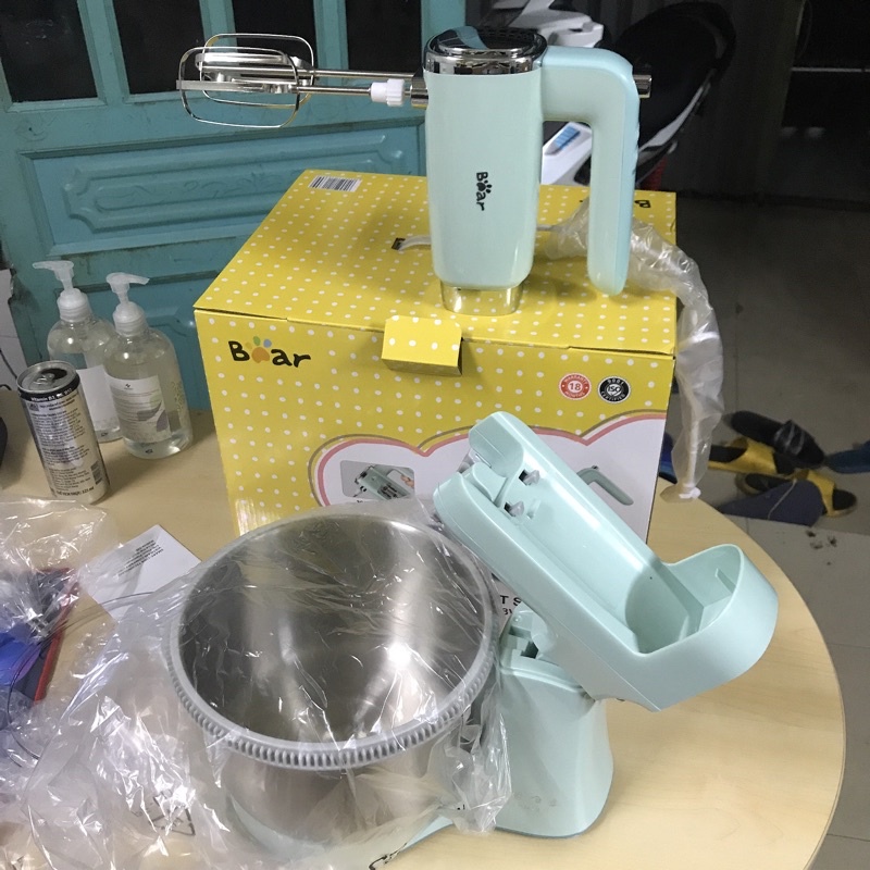Giới thiệu Máy Đánh Trứng Để Bàn, Cầm Tay Mini Trộn Bột, Đánh Trứng, Đánh Kem BEAR Màu Xanh Ngọc 4L