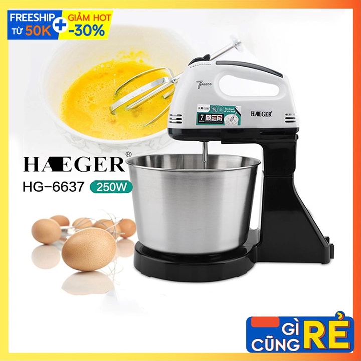 Thiết Bị Điện Gia Dụng > Đồ gia dụng nhà bếp > Máy trộn thực phẩm || [Mã 44ELSALE2 giảm 7% đơn 300K] Máy Đánh Trứng Để Bàn HAEGER 7 Tốc Độ Công Suất 250WCòn hàng