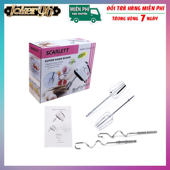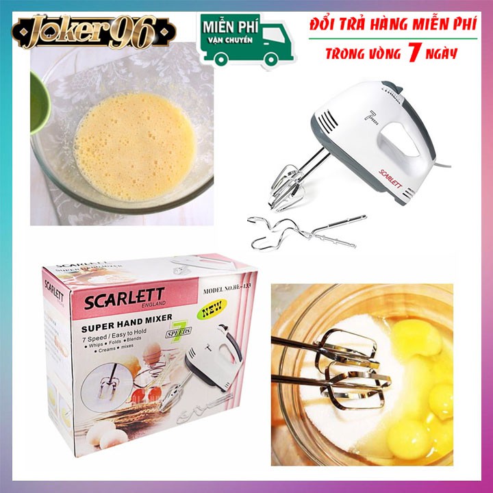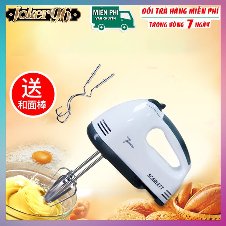 Máy đánh trứng, đánh kem bơ cầm tay, máy làm bánh 7 tốc độ công suất 180w tặng kèm 4 que làm bánh, đánh trứng chính hãng Scarlett
