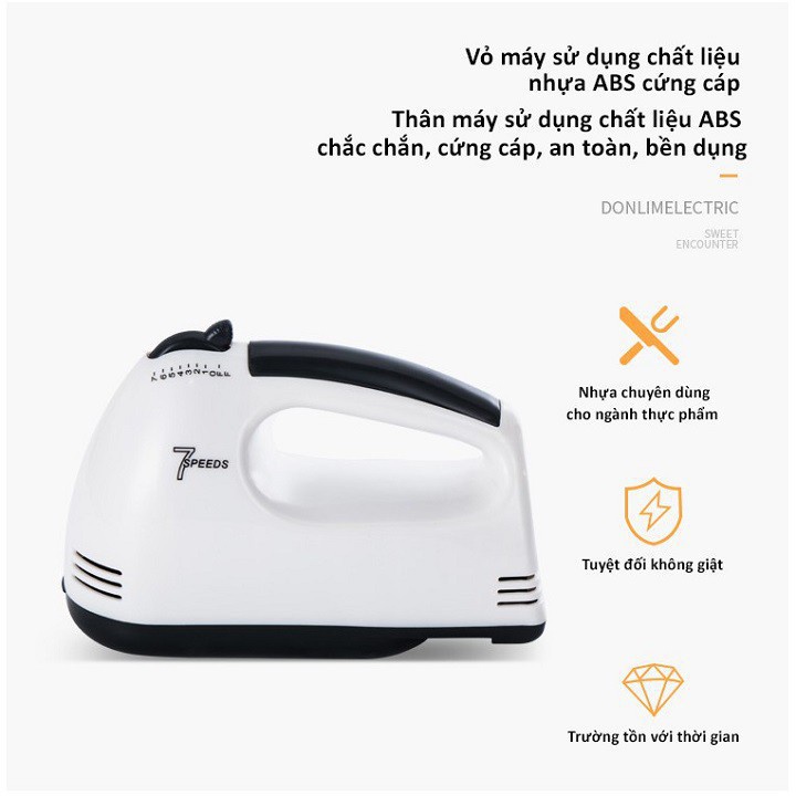 Máy đánh trứng cầm tay 7 tốc độ với ưu điểm nhẹ nhàng, kiểu dáng đẹp, giúp khâu làm bánh nhanh chóng tức thì, các sản phẩm máy đánh bột, đánh trứng cầm tay hiện đại đã giúp các bà nội trợ bớt lo lắng nhiều về khâu đánh bột, trứng sao cho đều và mịn và không bị mỏi tay.