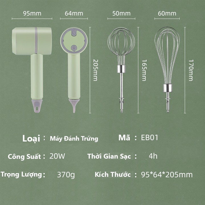 📌THÔNG SỐ SẢN PHẨM: MÁY ĐÁNH TRỨNG CẦM TAY - KHÔNG DÂY📌