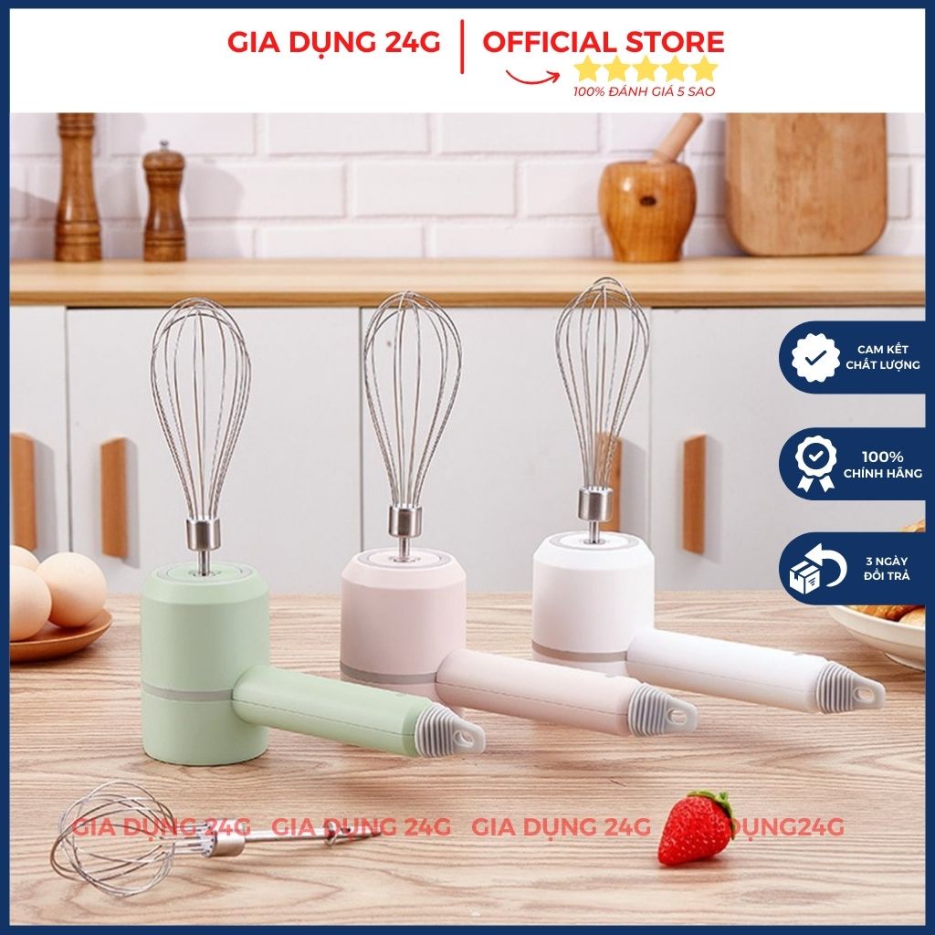 Máy Đánh Trứng Làm Bánh Kem Mini Cầm Tay, Tự Động, Sạc Pin Tiện Lợi Cho Chị EMGia Dụng 24G Xin Kính Chào Quý Khách