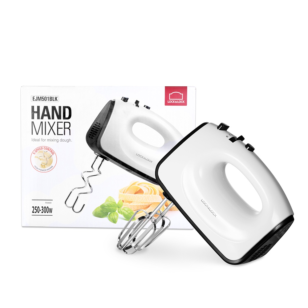 Máy đánh trứng Lock&Lock EJM501 300W - Hàng chính hãng, 5 tốc độ tùy chỉnh, 2 bộ que đánh linh hoạt - JoyMall