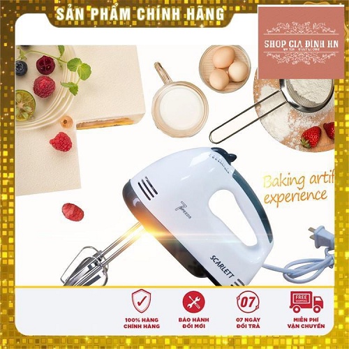 Máy đánh trứng, đánh kem bơ cầm tay, máy làm bánh 7 tốc độ công suất 180w tặng kèm 4 que làm bánh, đánh trứng chính hãng Scarlett có 7 mức tốc độ khác nhau