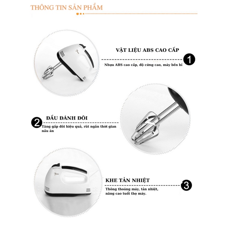 Giới thiệu Máy đánh trứng, máy đánh trứng cầm tay mini SCARLETT - 07 Tốc Độ 180W, Dụng cụ làm bánh, máy trộn bột MDT07 - VenuShop