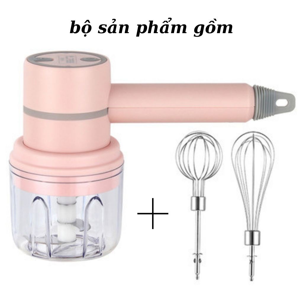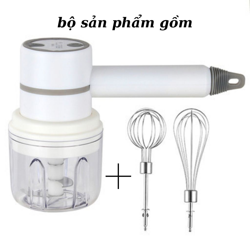 Máy đánh trứng mini cầm tay 3 trong 1, kết hợp máy xay thịt và rau củ quả sạc pin usb