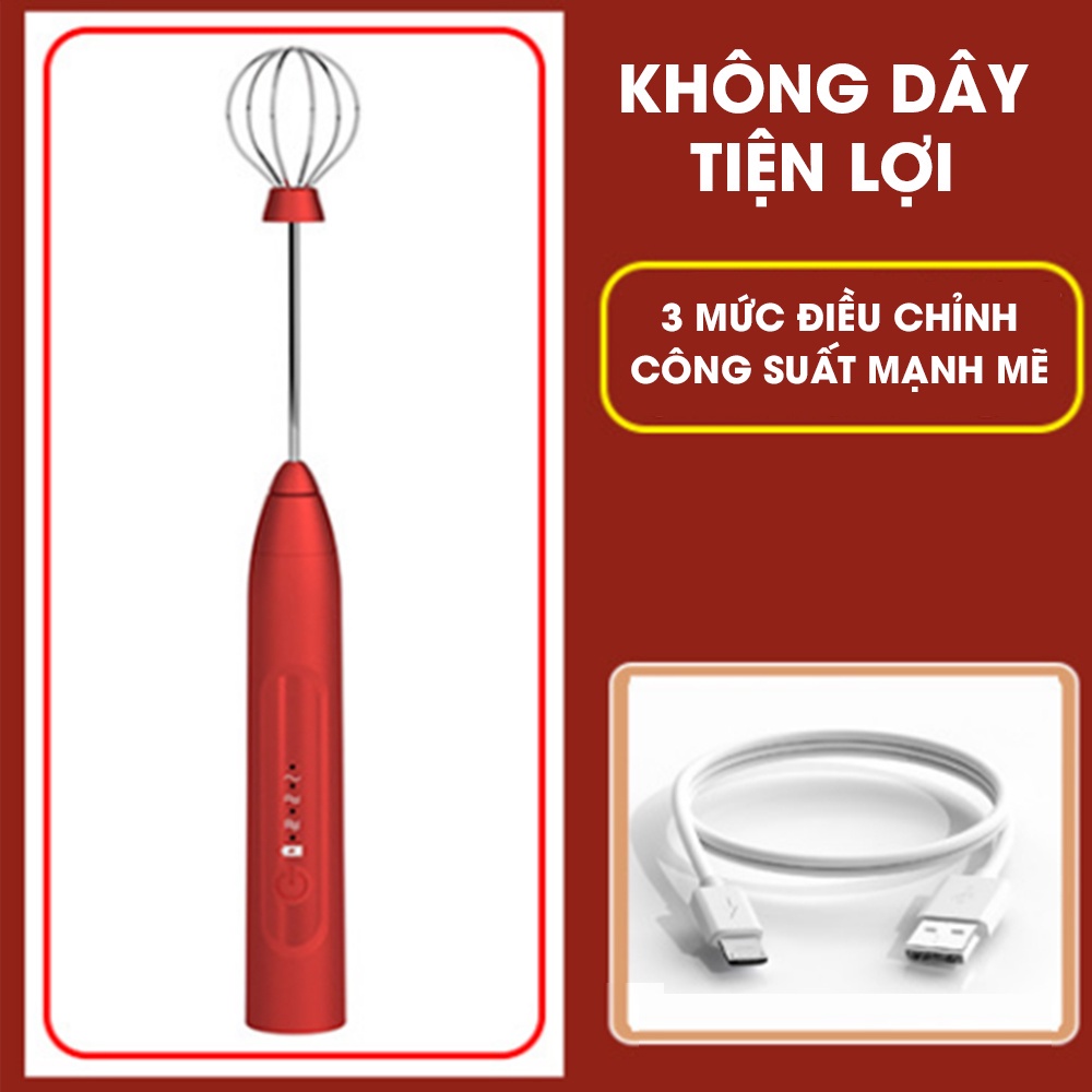 Máy đánh trứng mini cầm tay 3 chế độ sạc pin, Máy tạo bọt cà phê cao cấp