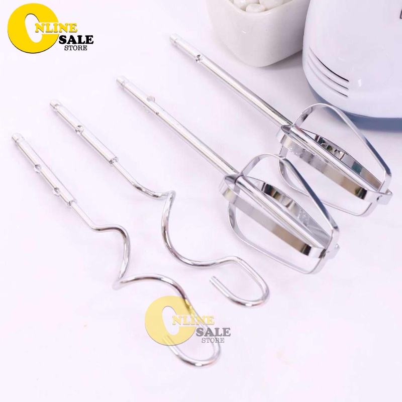 Máy trang bị 4 que , 2 que trộn và 2 que mốc nhào (bột lỏng) làm bằng inox không gỉ cao cấp, đảm bảo chất lượng, vệ sinh cho hỗn hợp trứng, kem, bột. Bộ dụng cụ hữu hiệu dùng cho các chức năng đánh trứng, và các loại thực phẩm khác