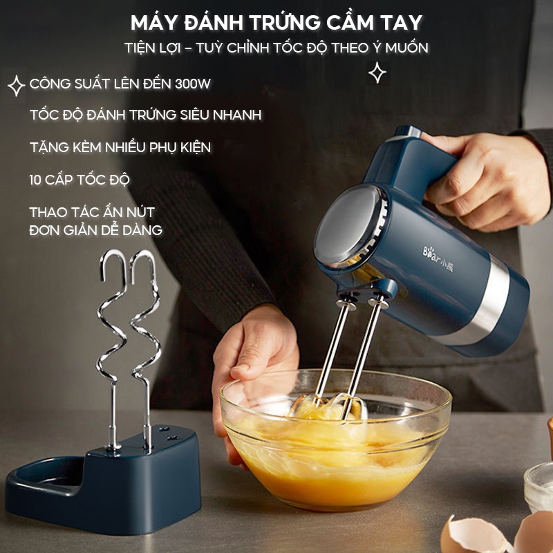 Giới thiệu Máy Đánh Trứng Nhào Bột Đa Năng Công Suất 300W 10 Tốc Độ Tặng Kèm Chân Đế Và Phụ Kiện Đánh Trứng Nhào Bột