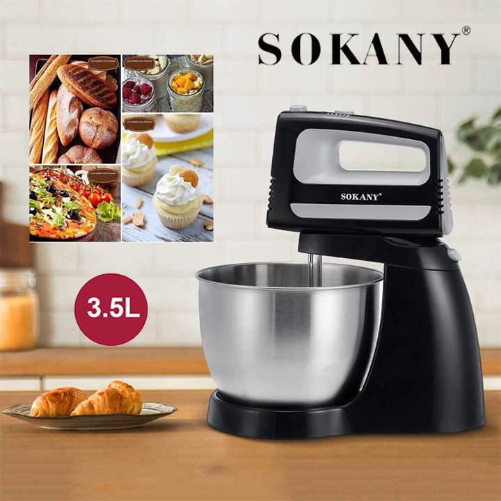 Giới thiệu Máy đánh trứng, nhào bột, đánh kem cầm tay - để bàn đa năng Cối 3,5L 400W SOKANY