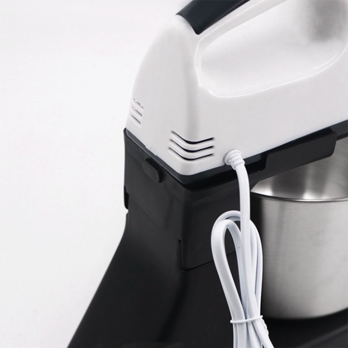 Máy đánh trứng để bàn 2 đầu có tô đựng có 7 tốc độ và công suất 250W với ưu điểm nhẹ nhàng, kiểu dáng đẹp, giúp khâu làm bánh nhanh chóng tức thì, các sản phẩm máy đánh bột, đánh trứng cầm tay hiện đại đã giúp các bà nội trợ bớt lo lắng nhiều về khâu đánh bột, trứng sao cho đều và mịn và không bị mỏi tay.
