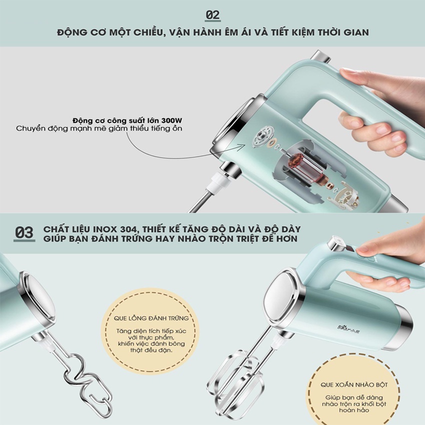 Máy Đánh Trứng Nhồi Bột Bear 10 tốc độ đánh công suất 300W (Hàng chính hãng 1 đổi 1 trong 30 ngày, bảo hành 18 tháng)