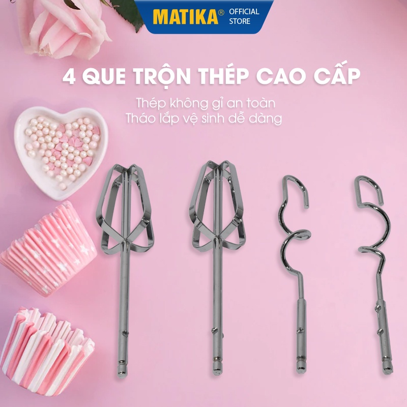 - Thiết kế máy trộn đa năng cầm tay Matika có thể tháo lắp và vệ sinh rất đơn giản.