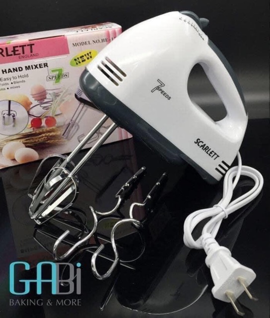 Máy đánh trứng Scalet💁♀️💁♀️Máy đánh trứng SCARLETT được sản xuất theo công nghệ của Anh có công suất 180w. Sản phẩm bao gồm: 2 que đánh trứng, 2 que quấy bột