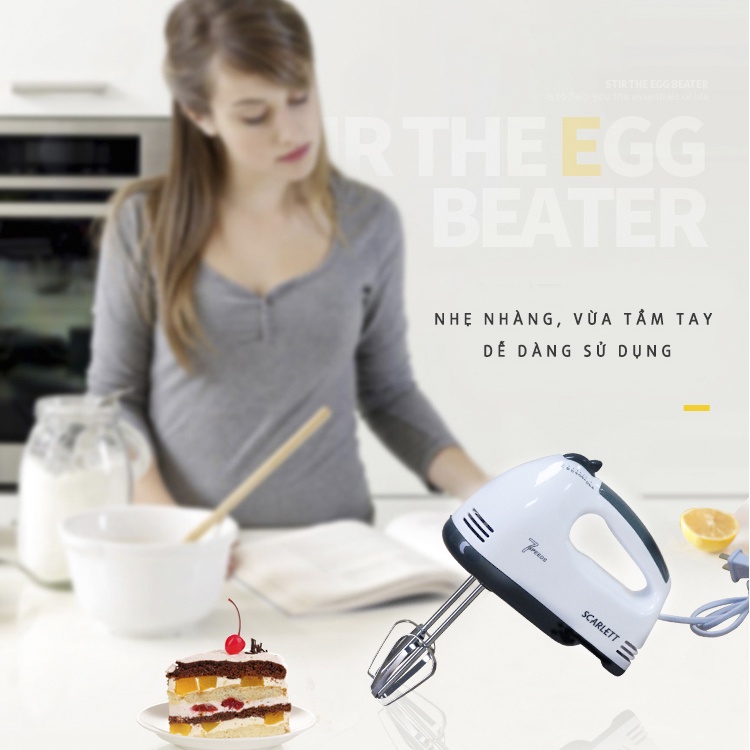 Máy Đánh Trứng Scarlett Cầm Tay Mini 7 Cấp Tốc Độ Có Dây Trộn Bột Làm Bánh Kem Trộn Salad Tạo Bọt Cafe Cà Phê🌈Có Đến 7 Tốc Độ