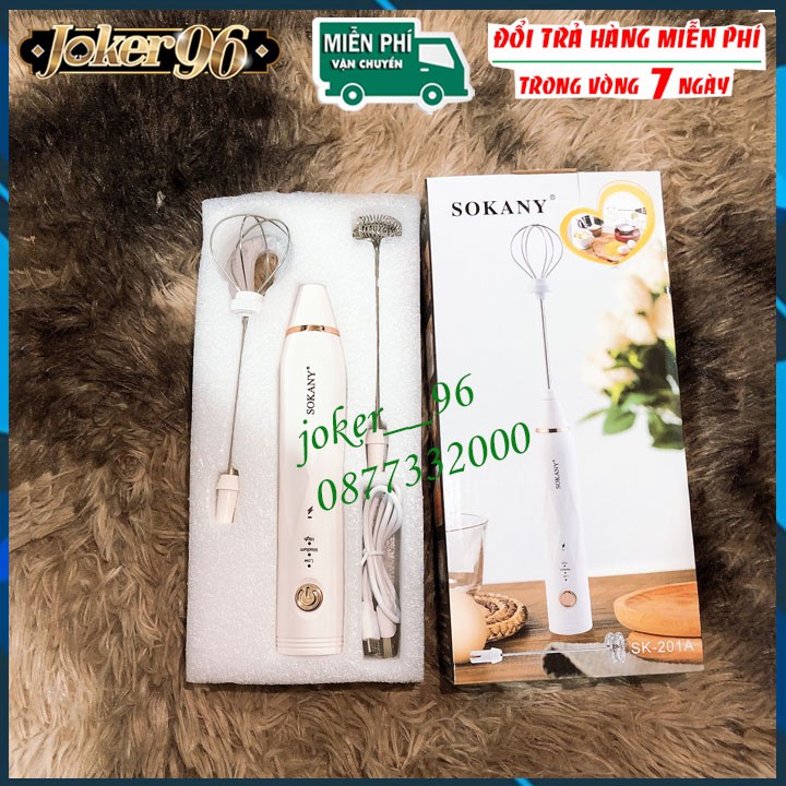 Máy Đánh Trứng Sokany 3 Tốc Độ, Đánh Sữa Và Tạo Bọt Cafe Di Động Cầm Tay Sử Dụng Pin Sạc Cao Cấp