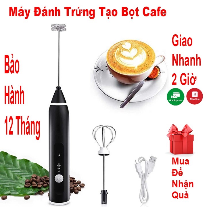 Máy đánh trứng tạo bọt cafe mini 2 trong 1 với 3 chế độ dùng pin sạc USB cao cấp