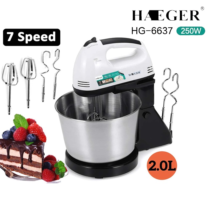 Nhà cửa & Đời sống > Dụng cụ nhà bếp > Phới đánh trứng || [Mã 253ELSALE hoàn 7% đơn 300K] Máy Đánh Trứng Trộn Bột Cầm Tay và Để Bàn HAEGER - 7 Tốc Độ, Chậu 2LCòn hàng