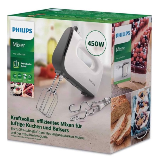 Giới thiệu [Mã ELHA22 giảm 6% đơn 300K] Máy đánh trứng trộn bột cầm tay PHILIPS HR3741/00 450W màu trắng