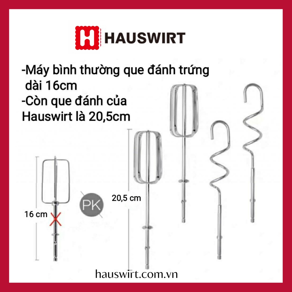 * Thiết kế que đánh của máy đánh trứng cầm tay Hauswirt Hm330 được thiết kế 20,5cm còn các máy thông thường là16cm.