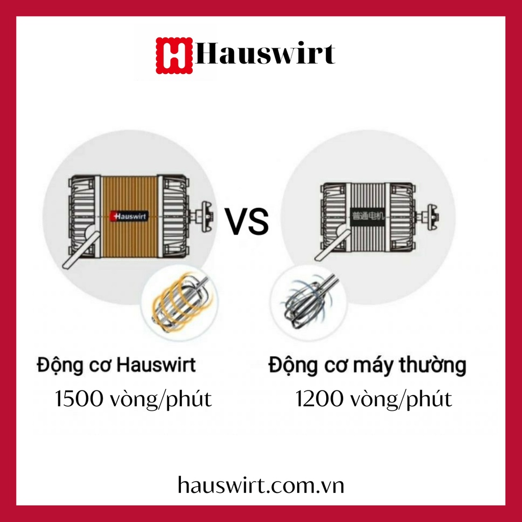 - Tốc độ động cơ máy đánh trứng cầm tay Hauswirt Hm330 hợp quay nhanh là 1500 vòng/phút còn Loại thường tốc độ quay chỉ đc 1200vòng/phút.