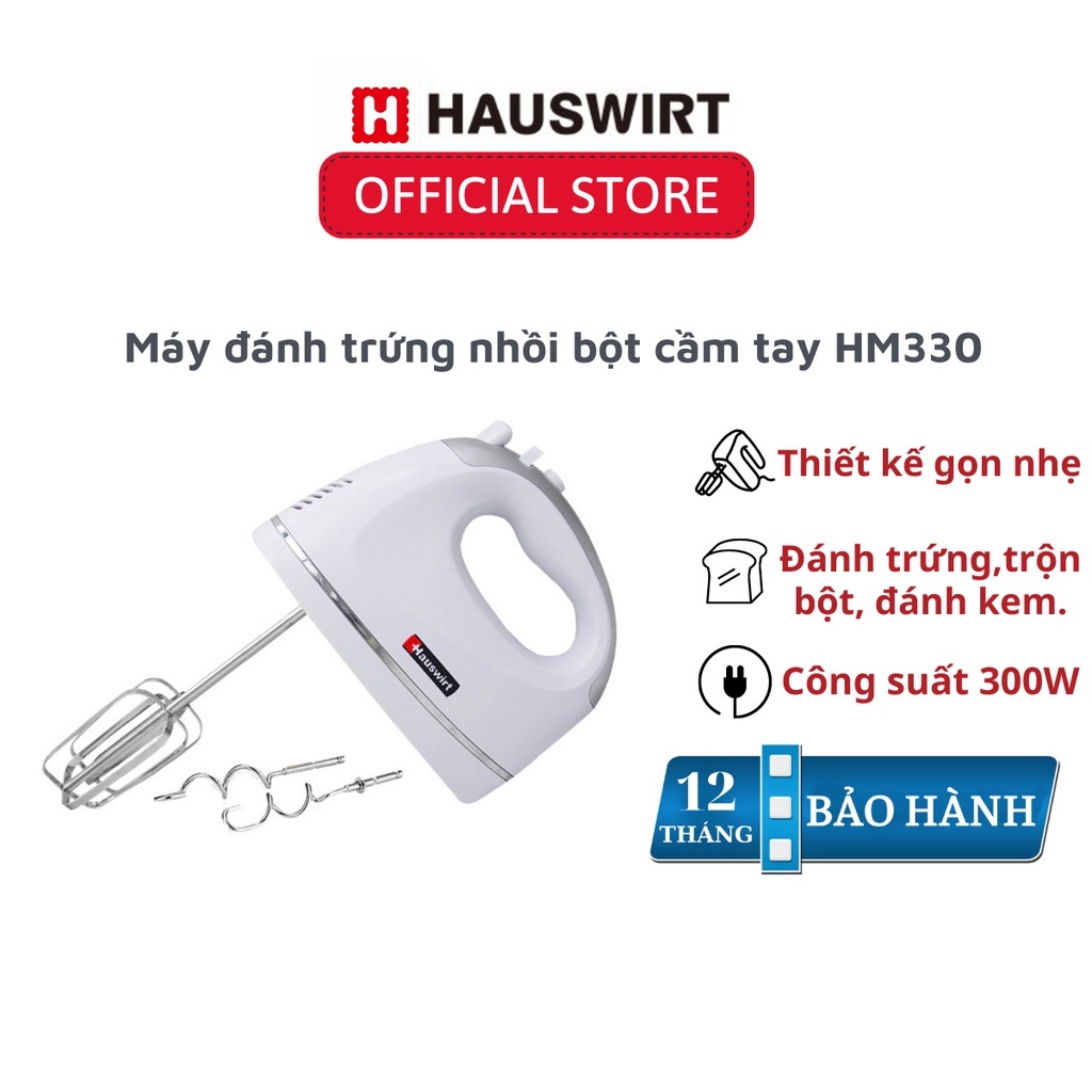 Thiết Bị Điện Gia Dụng > Đồ gia dụng nhà bếp > Máy trộn thực phẩm || Máy đánh trứng trộn bột cầm tay Hauswirt HM330 công suất 300W (5 tốc độ đánh) có que đánh trứng, que nhồi bộtCòn hàng