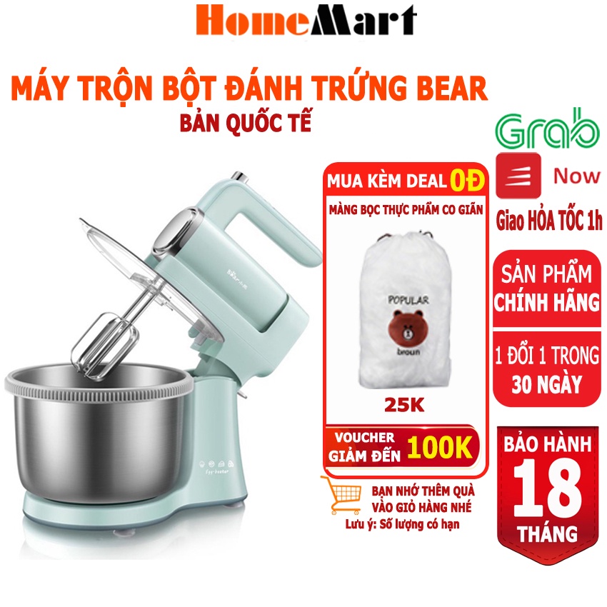 Thiết Bị Điện Gia Dụng > Đồ gia dụng nhà bếp > Máy trộn thực phẩm || Máy Đánh Trứng Trộn Bột Cầm Tay và Để Bàn Bear (Hàng chính hãng 1 đổi 1 trong 30 ngày, bảo hành 18 tháng) - HomemartCòn hàng