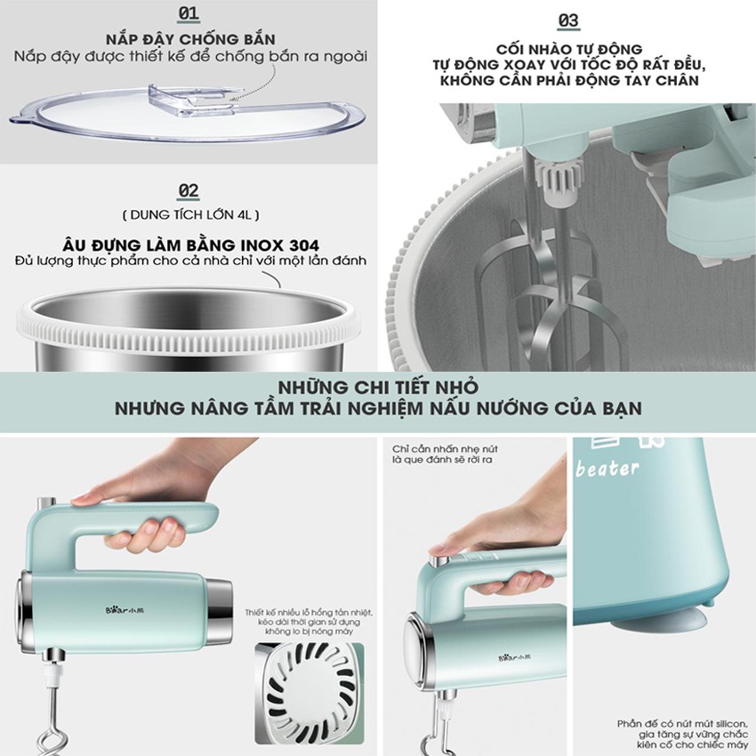 Giới thiệu Máy Đánh Trứng Trộn Bột Cầm Tay và Để Bàn Bear (Hàng chính hãng 1 đổi 1 trong 30 ngày, bảo hành 18 tháng) - Homemart