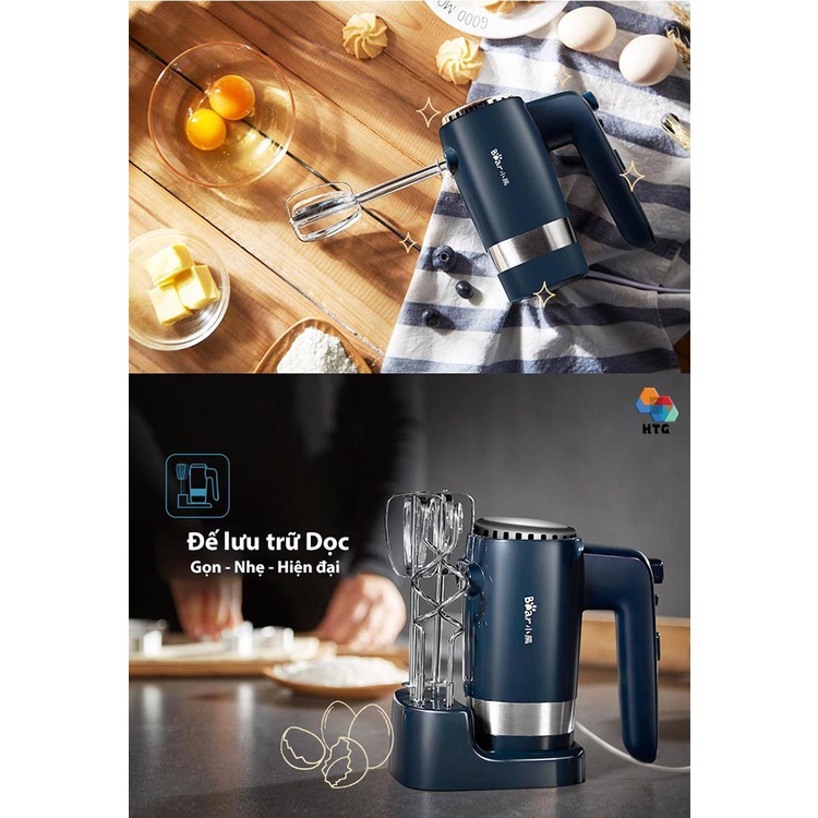 Máy đánh trứng, trộn bột, đánh kem, đánh bơ công suất lớn 300W, 4 đầu khuấy inox 304, 10 cấp độ, tích hợp đế lưu trữ tiện lợi - Tặng kèm : Phễu lọc lòng trắng trứng💥Bear - DDQ - B02L1 - Hàng Chính Hãng💥