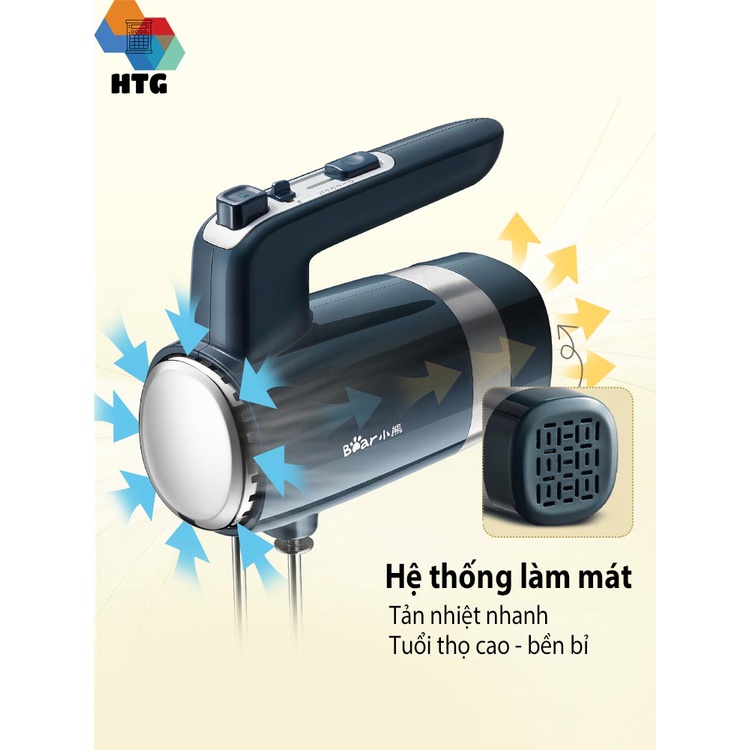 Máy đánh trứng trộn bột cầm tay Bear DDQ-B02L1 công suất mạnh mẽ 300W, 4 đầu khuấy inox 304, 10 cấp độ chính hãng