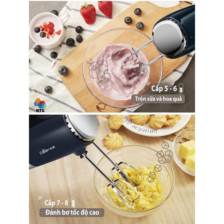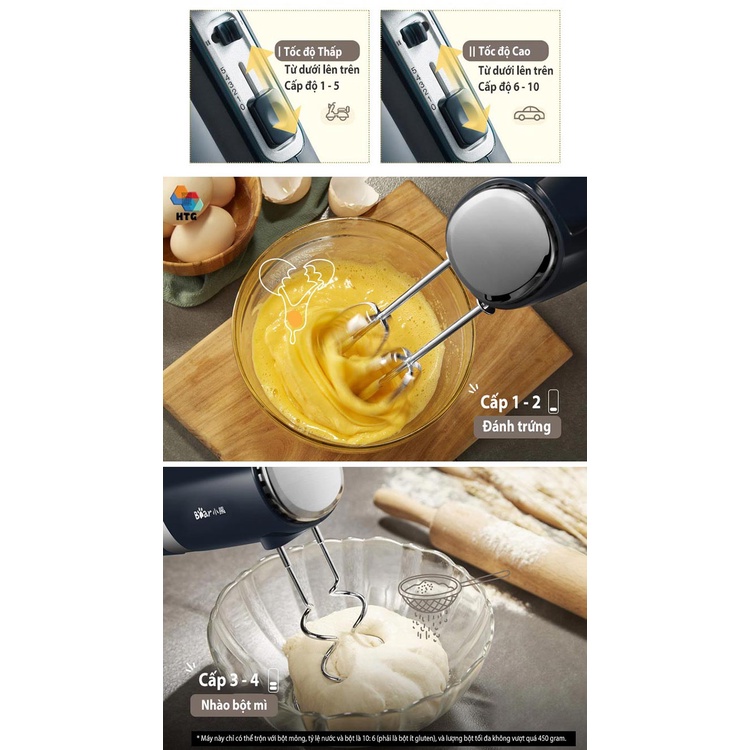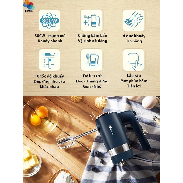 Giới thiệu Máy đánh trứng trộn bột cầm tay Bear DDQ-B02L1 công suất mạnh mẽ 300W, 4 đầu khuấy inox 304, 10 cấp độ chính hãng