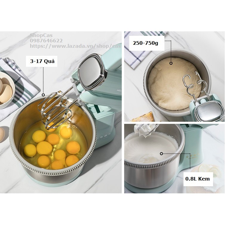+ Dung tích Bow 4L Có thể hoàn thành công việc: 3-17 quả trứng, 250-750g bột hay là 0,8L kem cho 1 lần hoạt động