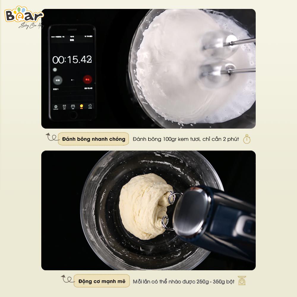 Máy đánh trứng cầm tay đa năng Bear 300W Tốc Độ Cực Mạnh - Hoạt Động Êm Ái𝗨̛𝘂 đ𝗶𝗲̂̉𝗺: