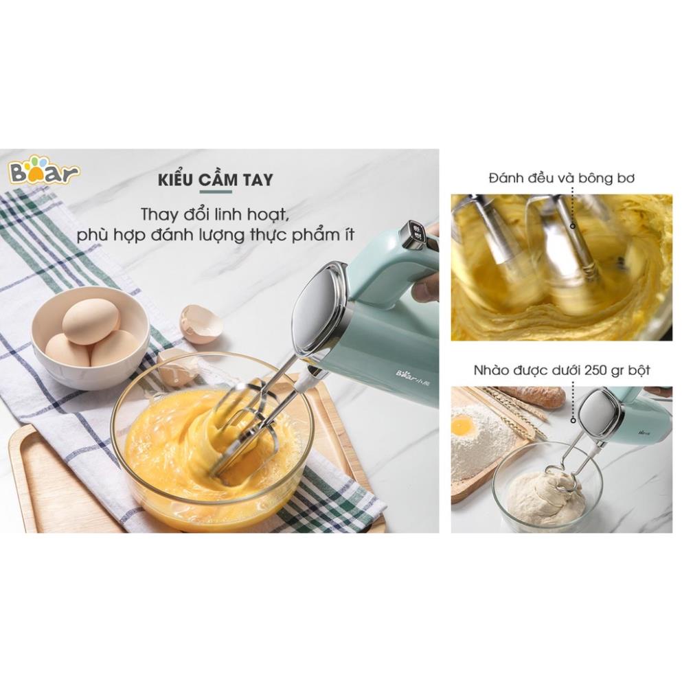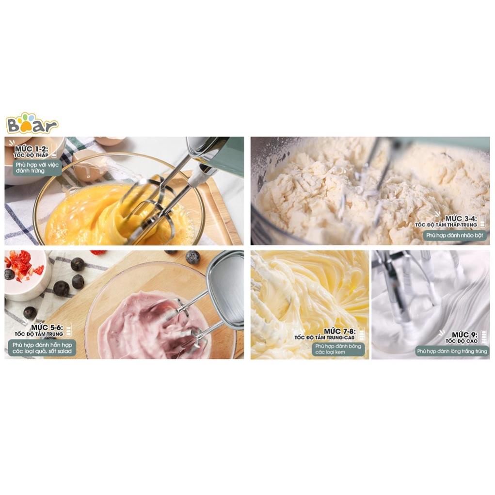 Thiết Bị Điện Gia Dụng > Đồ gia dụng nhà bếp > Máy trộn thực phẩm || Máy đánh trứng trộn bột để bàn đa năng Bear, đánh kem câm tay mini, 9 tốc độ gồm 4 que đánh, máy tháo rời, BH 18 thCòn hàng