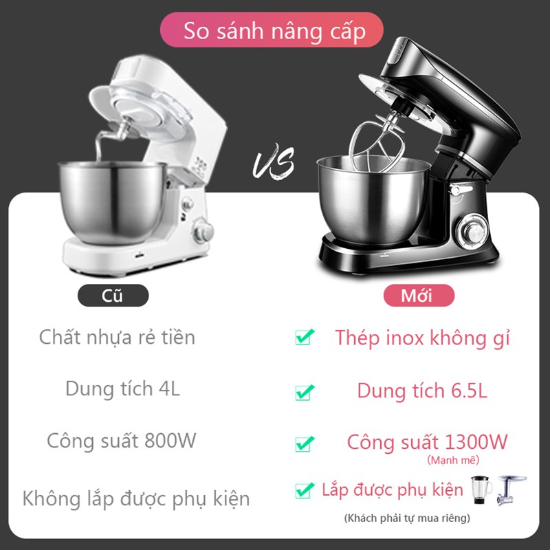 Máy đánh trứng trộn nhào bột 6.5 lít 1300W máy trộn bột đánh trứng toàn tự động màu đen nâng cấp mới nhất